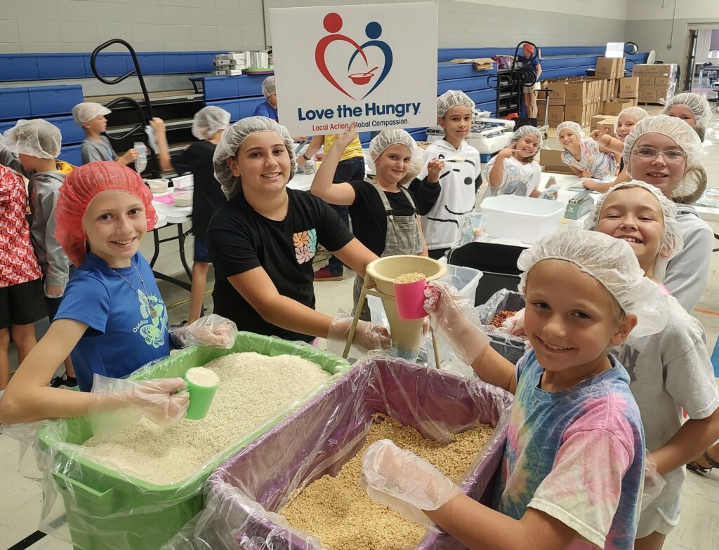 More than 400 St. Peter’s Lutheran School (Columbus, IN) students grades K – 8 worked throughout the school day on September 11th to package 31,104 fortified Nutri-Plenty servings. The annual event engages students, teachers, and staff in a meaningful day of service that promotes compassion toward children vulnerable to hunger and teamwork among classmates. 132 cartons of Nutri-Plenty meals were donated to Orphan Grain Train (Jonesville, IN) for distribution to families in rural eastern Kentucky and the southern Texas border. An additional 2,500 meals will be included in a shipment of aid to a mission outreach in Guatemala.
