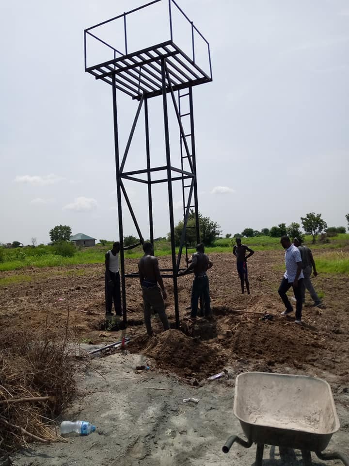 Children help greet the borehole drilling team as the project gets underway.A tower is erected to hold storage tanks, a solar pumping station, and purification equipment. A security fence will also be installed. Two tanks will ensure that up to 5,000 liters of clean water are available at all times.Read More